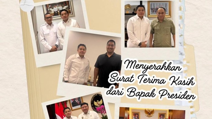 “Berjumpa dengan lima menteri Kabinet Merah Putih yang telah menyelesaikan tugas. Pertemuan ini menjadi kesempatan untuk bersilaturahmi sekaligus menyerahkan surat khusus dari Presiden Prabowo Subianto,” tulis Teddy dalam akun @sekretariat.