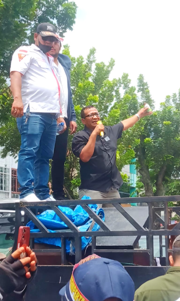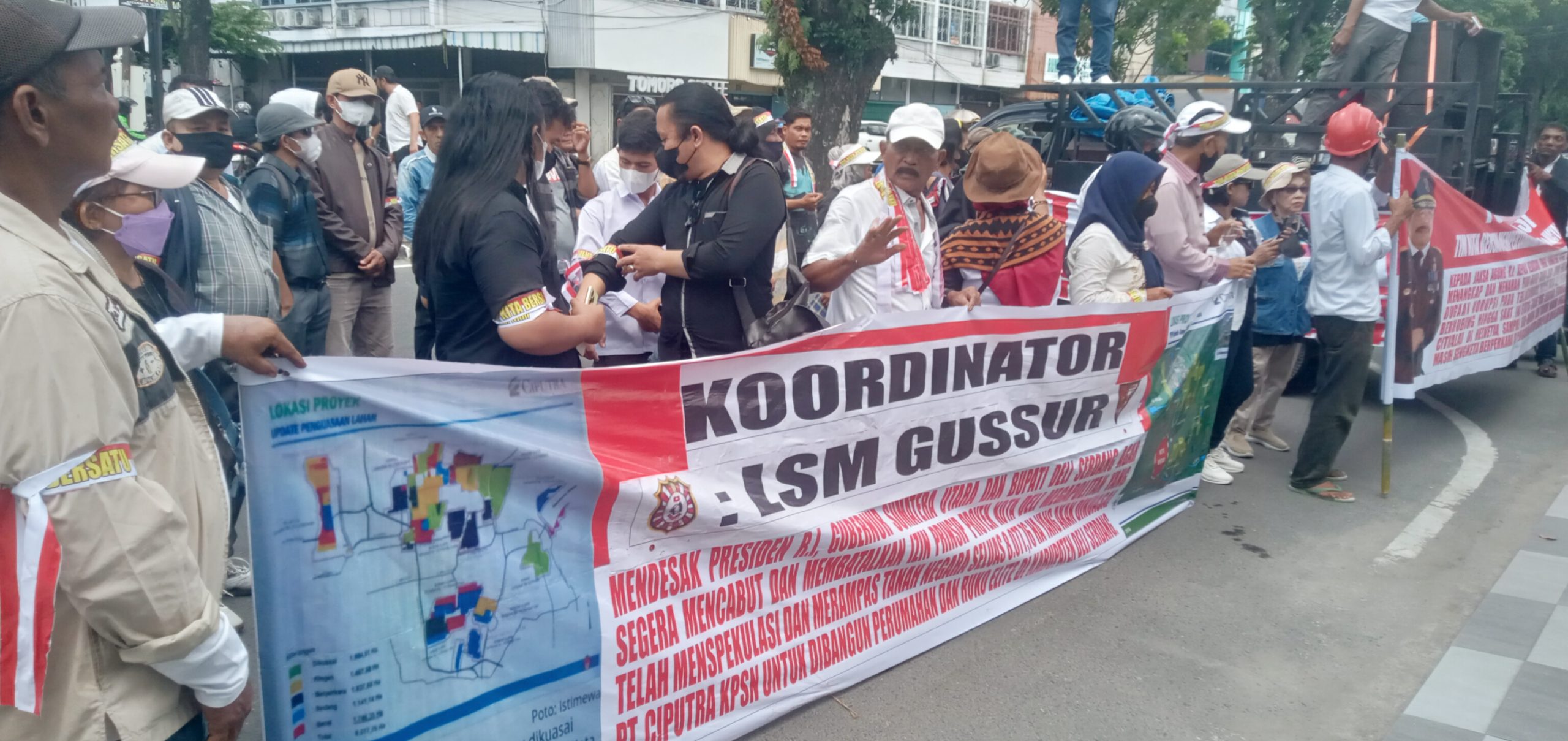 MEDAN|PERS.NEWS – Polemik lahan eks PTPN di beberapa lokasi di Kabupaten Deli Serdang memicu DPP LSM Gudang Surat Suara Rakyat (GUSSUR) Indonesia, Himpunan Putra Putri Keluarga Besar TNI angkatan darat 63 (HIPAKAD 63), Ikatan Keluarga Anak Melayu Serdang serta komponen masyarakat melakukan aksi unjuk rasa di depan gedung Agraria dan Tata Ruang/Badan Pertanahan Nasional (ATR/BPN) Sumut di Jalan Brigjend Katamso Medan Maimon Medan, Senin, 13 Oktober 2025.