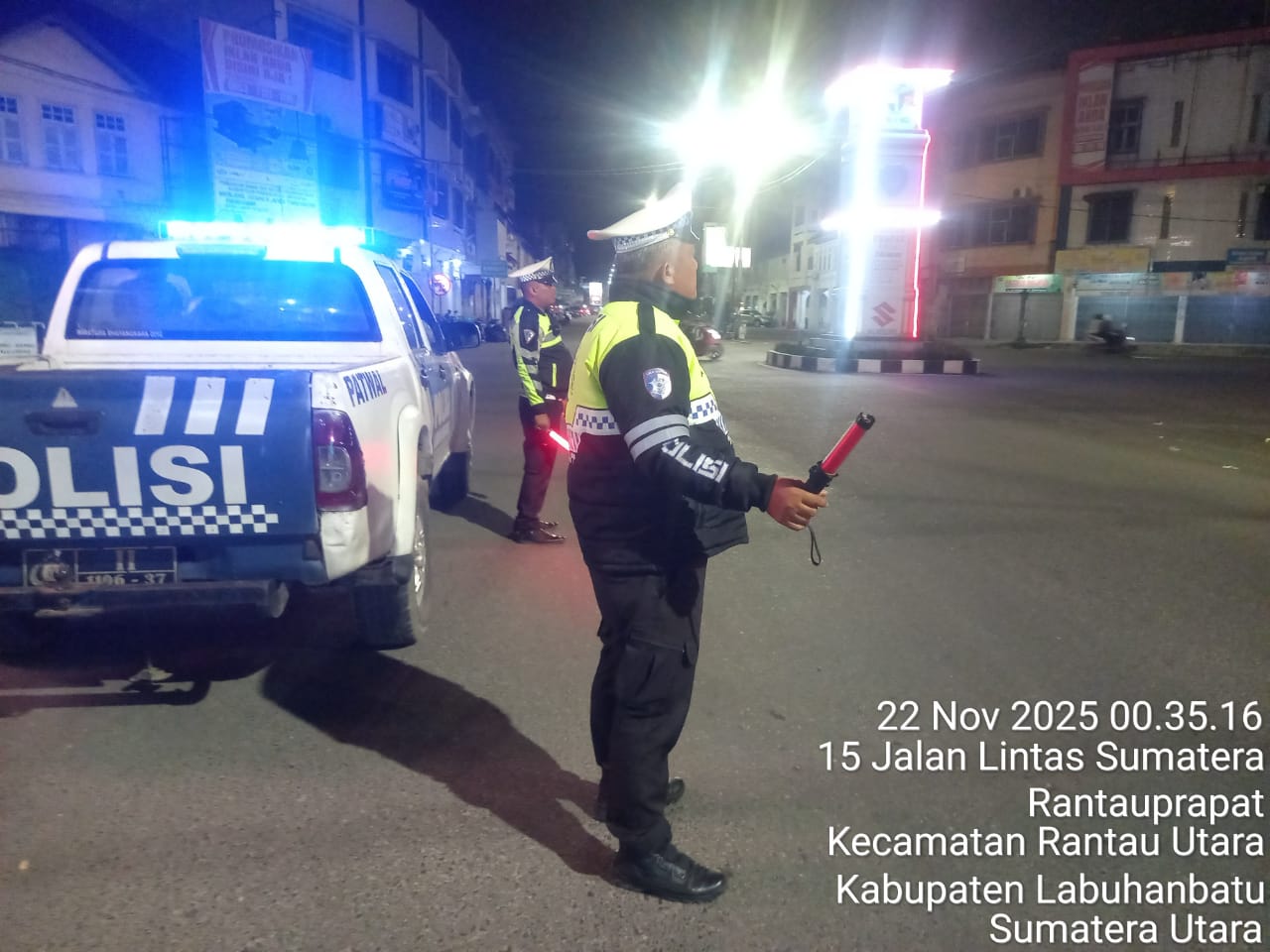 LABUHANBATU|PERS.NEWS —Sat Lantas Polres Labuhanbatu di bawah komando Kasat Lantas IPTU Muhammad Rizal kembali menggelar Patroli Blue Light pada Jumat malam, 21 November 2025. Patroli ini digencarkan sebagai langkah menjaga keamanan, keselamatan, dan ketertiban lalu lintas, khususnya di sepanjang jalur rawan kecelakaan dan tindak kriminal di Jalinsum wilayah hukum Polres Labuhanbatu.