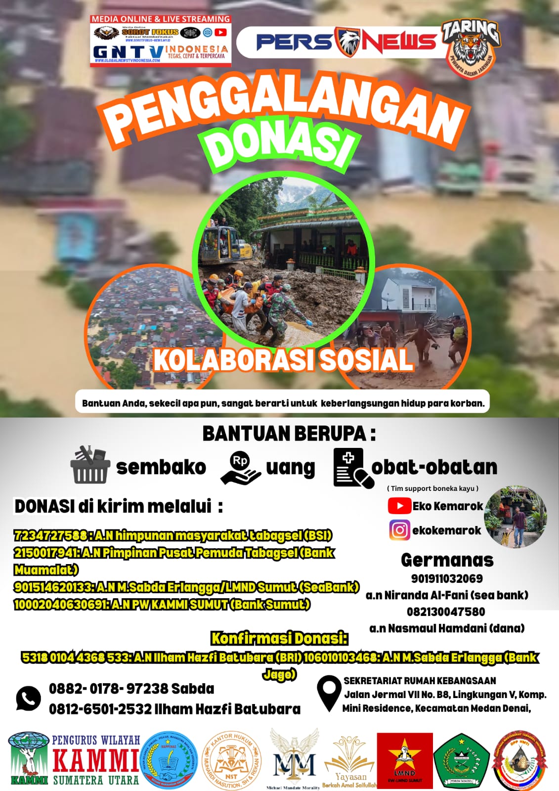 Masyarakat diimbau untuk ikut membagikan informasi ini agar lebih banyak pihak tergerak membantu dan Masyarakat Sumatera Utara dapat kembali bangkit.(TIM)