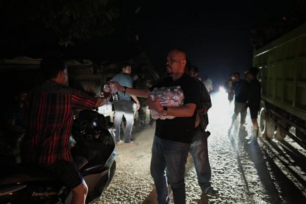 “Kami membawa satu truk penuh dari Medan — makanan, beras, air minum, roti, masker, semuanya kami siapkan untuk saudara-saudara kita yang sedang menghadapi masa sulit,” ucap Dudi dengan suara yang mencerminkan kepedulian mendalam.