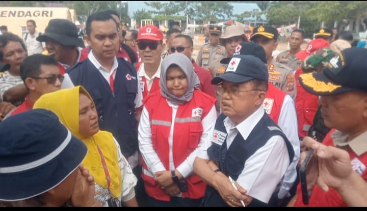 Didampingi Wakil Bupati Tapanuli Tengah Mahmud Efendi Lubis jusuf Kalla lansung menyerahkan Bantuan kepada perwakilan warga di posko pengungsian SMA Negeri 1 Tukka.