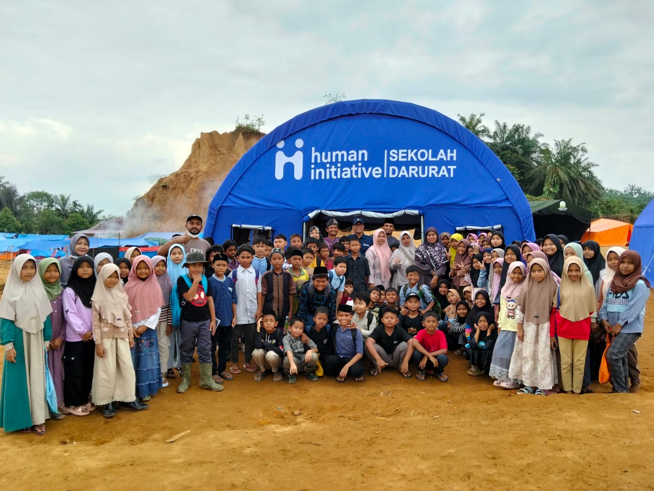 Sekolah darurat ini merupakan hasil kolaborasi antara Human Initiative dan masyarakat setempat. Relawan Human Initiative bersama warga bergotong royong menyiapkan material dan merakit ruang belajar sederhana agar anak-anak dapat kembali mengikuti kegiatan belajar mengajar secepat mungkin.