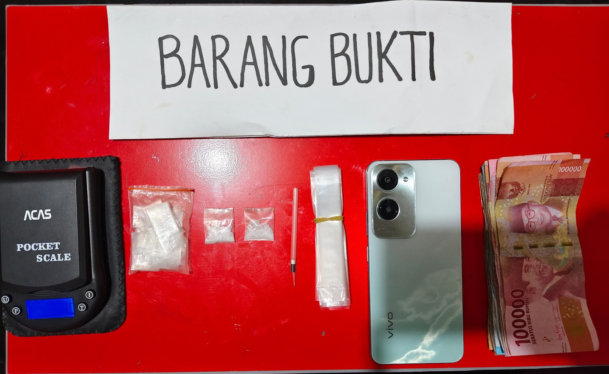 Hasil penyelidikan membuahkan hasil. Sekitar pukul 20.15 WIB, petugas berhasil menangkap tersangka FA als F di sebuah gubuk terbuka yang berada di area perkebunan kelapa sawit. Saat penangkapan, petugas menemukan dua bungkus plastik kecil berisi diduga narkotika jenis sabu serta satu unit timbangan elektrik yang berada di hadapan tersangka.