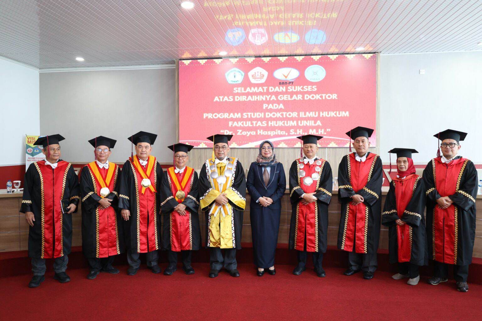 Zoya Haspita pada sidang tersebut resmi dinyatakan lulus sebagai doktor ke-50 pada program studi ini setelah berhasil mempertahankan disertasi berjudul “Formulasi Integrated Restorative Justice System dalam Penegakan Hukum Pidana di Indonesia.”