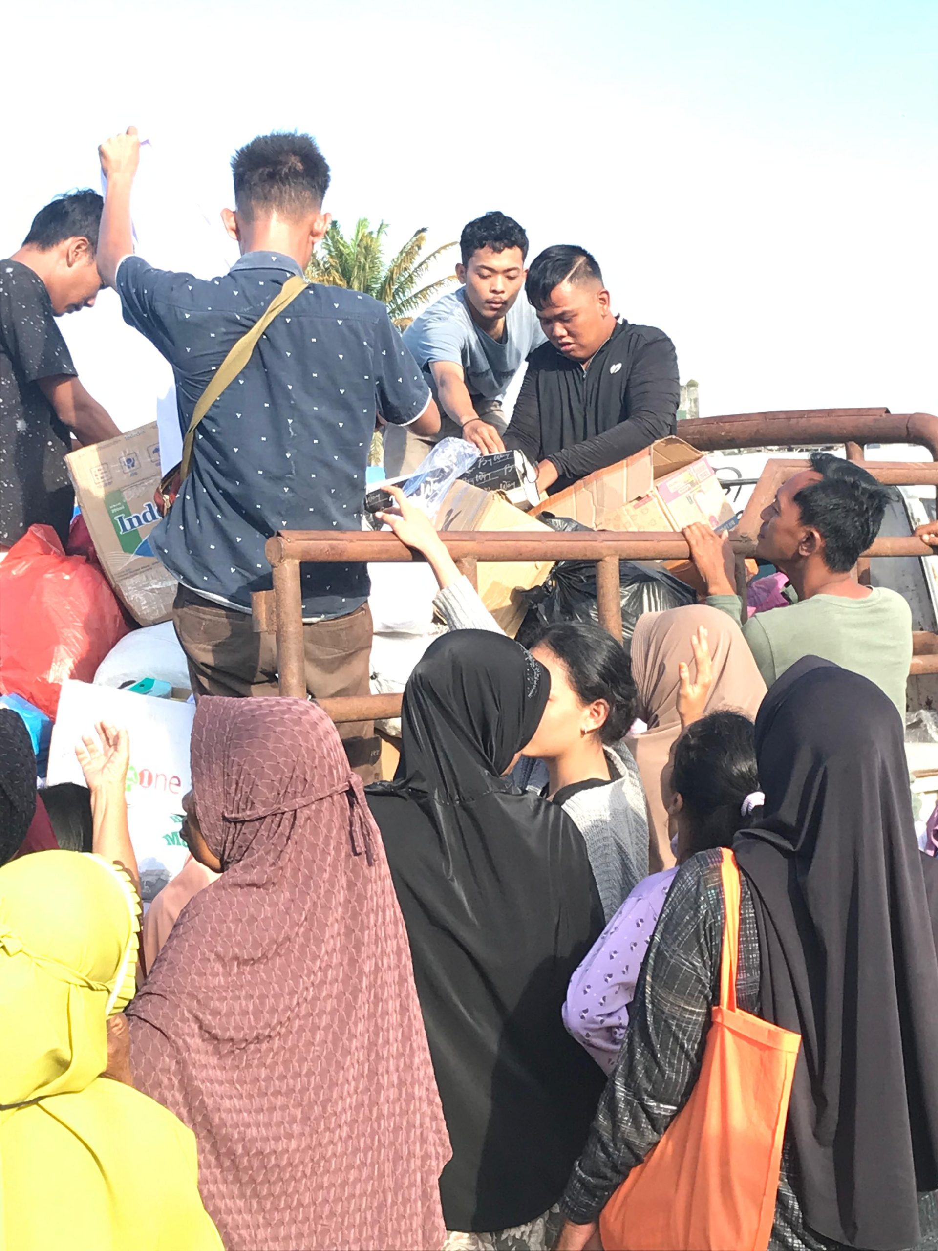 Keterangan : Antusias Warga Menerima Bantuan Desa Suka Jadi, Kecamatan Karang Baru, Kabupaten Aceh Tamiang