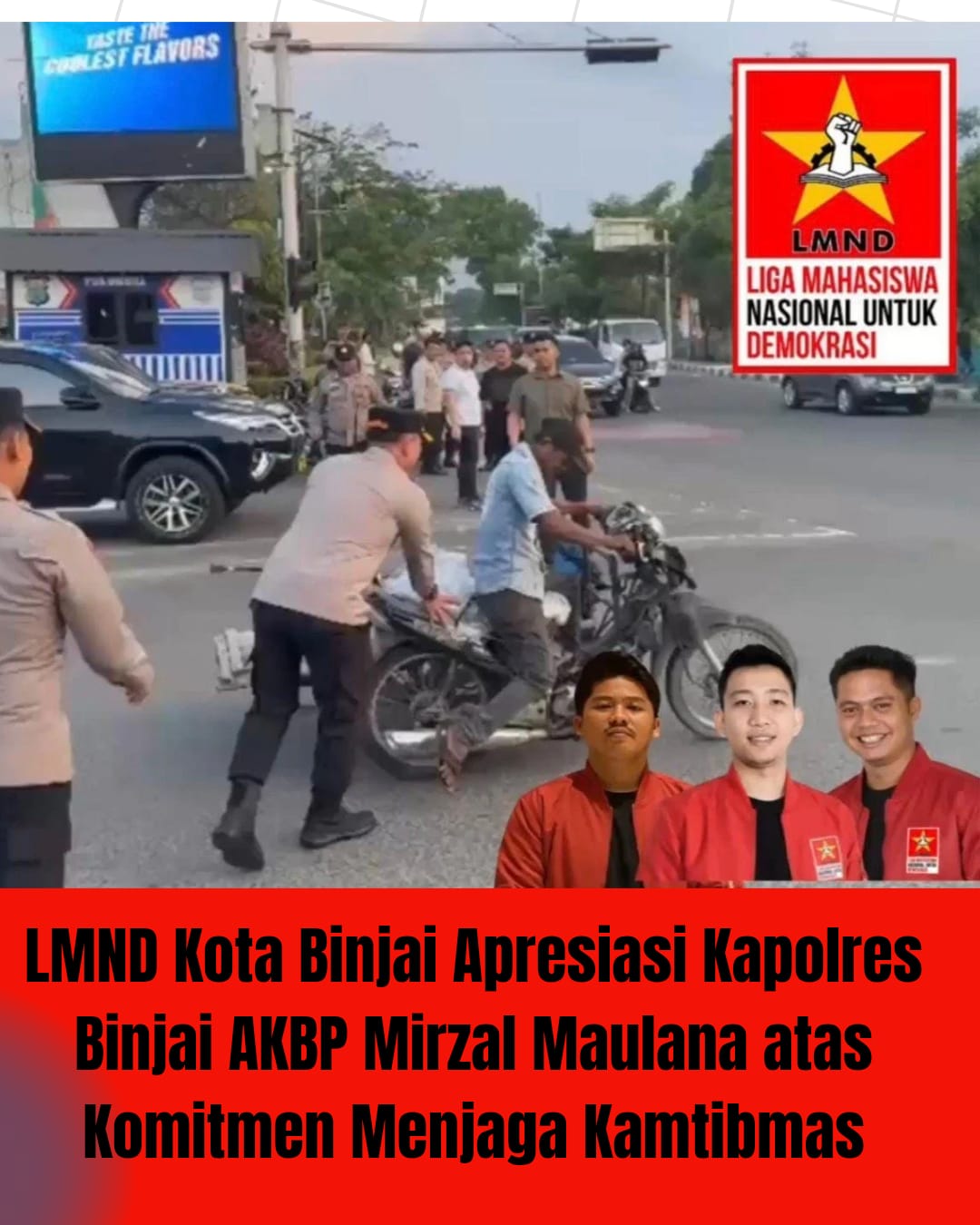 BINJAI|PERS.NEWS-Dewan Eksekutif Liga Mahasiswa Nasional untuk Demokrasi (LMND) Kota Binjai menyampaikan apresiasi kepada Kapolres Binjai, Mirzal Maulana, atas komitmennya menjaga keamanan dan ketertiban masyarakat (kamtibmas) di wilayah hukum Kepolisian Resor Binjai.
