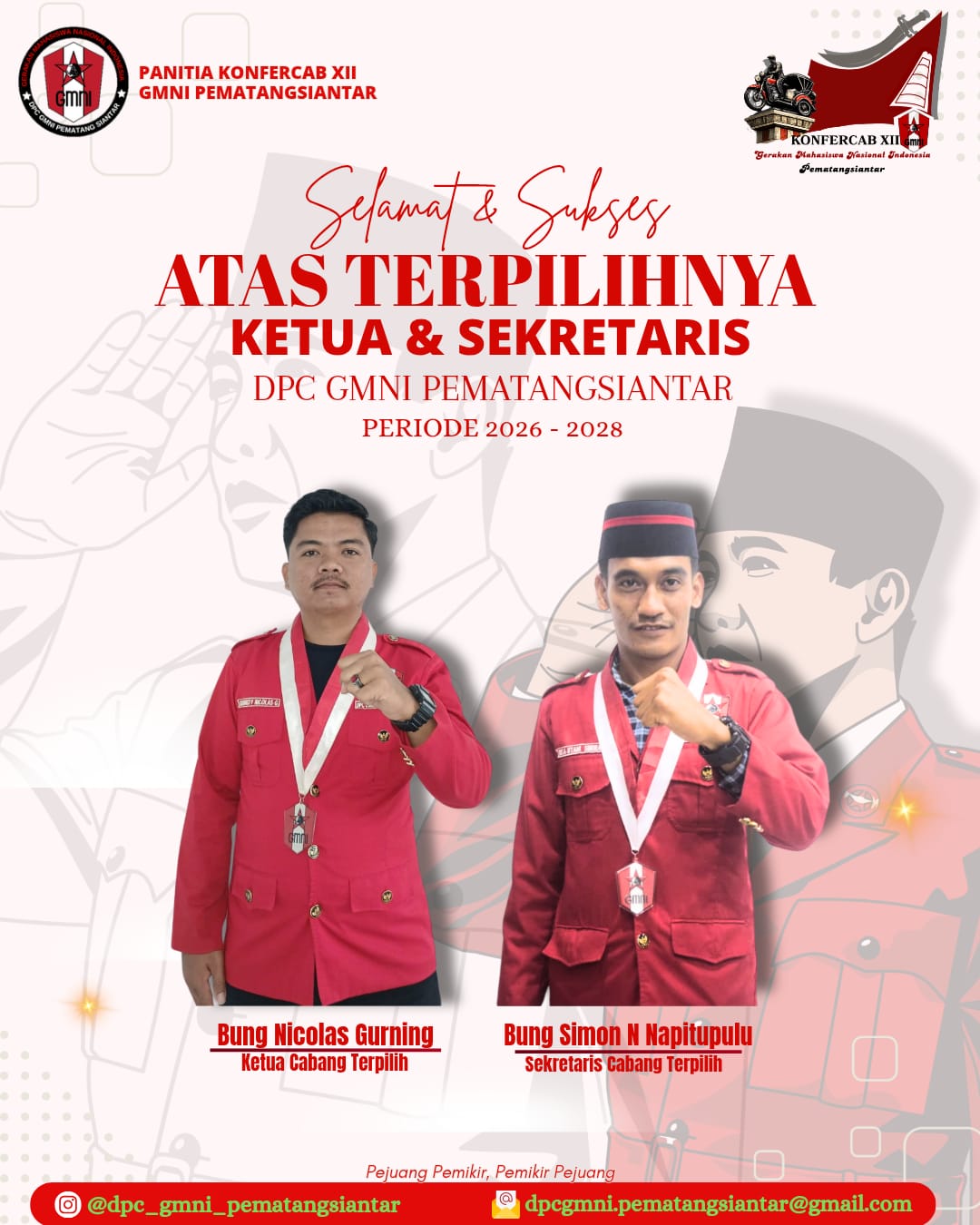 Keduanya menyatakan komitmennya untuk memperkuat kaderisasi serta menjaga peran GMNI sebagai mitra kritis pemerintah dan pembela kepentingan rakyat marhaen di Kota Pematangsiantar.