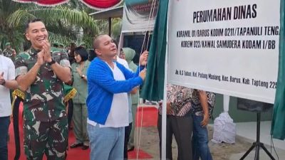 TAPTENG|PERS.NEWS-Bakhtiar Ahmad Sibarani bersama Dandim Letkol Inf Fernando Batubara, Resmikan Perumahan dinas Koramil 01 Barus…