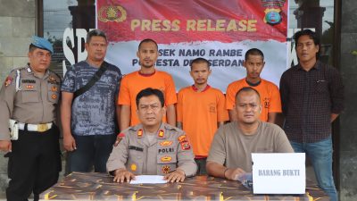 DELI SERDANG|PERS.NEWS-Polsek Namorambe, Polresta Deli Serdang, berhasil menangkap 3 orang Berinisial pelaku pencurian sepeda motor…